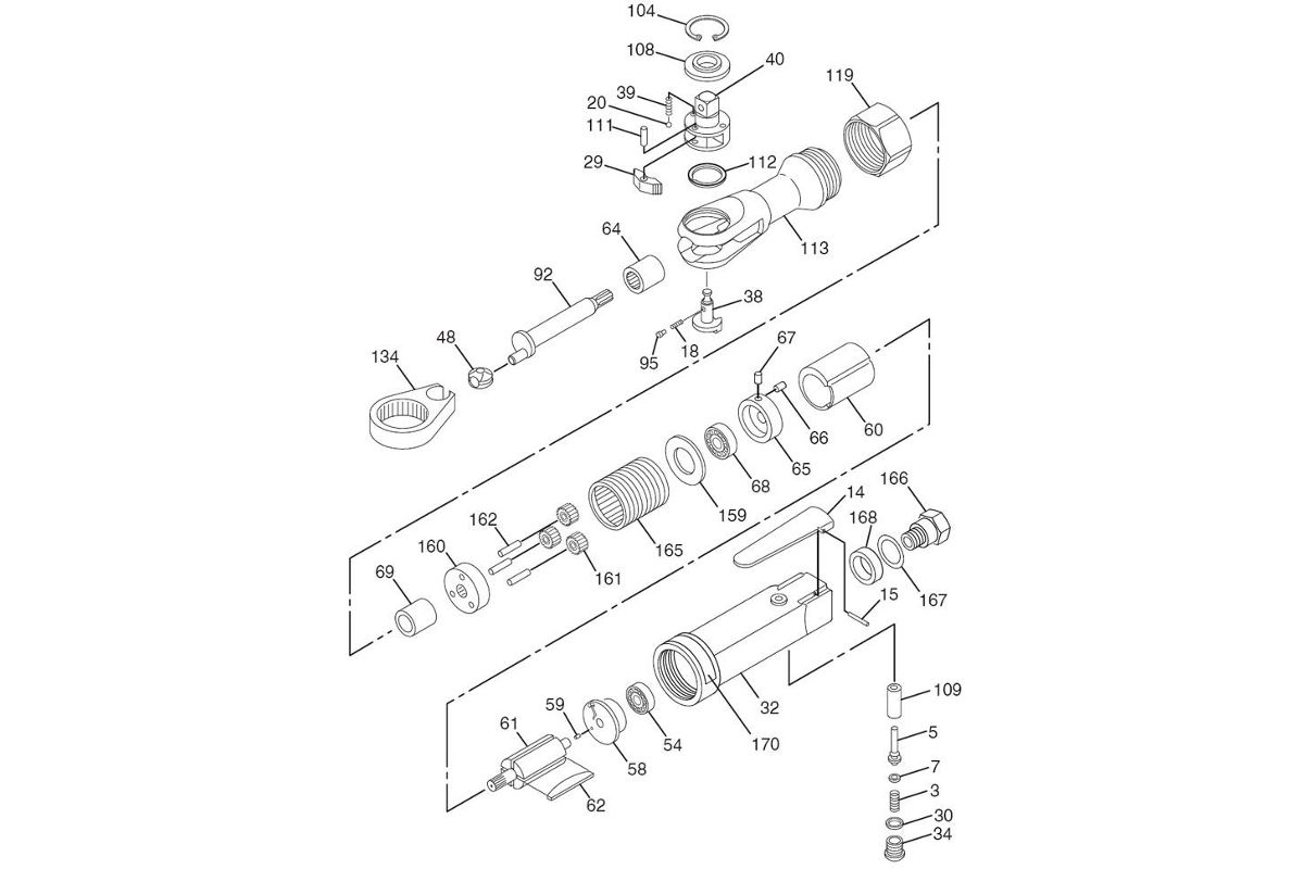 Пневматический удлиненный трещеточный гайковерт 3/8''