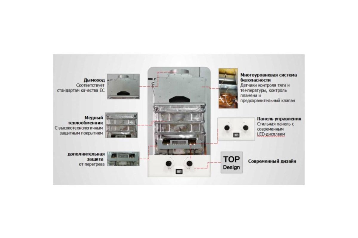 Газовые колонки серии Fonte Glass быстро и бесшумно обеспечат Вас необходимым количеством горячей воды, а многоступенчатая система безопасности исключит любые перебои в работе оборудования. При создании приборов использовались «зеленые» технологии, заботящиеся о Вашем здоровье и не наносящие вред окружающей среде. Модель специально разработана для работы только на сжиженном баллонном газе. Защита от включения без воды. Датчик тяги дымохода (отключает подачу газа). Предохранительный клапан давления.