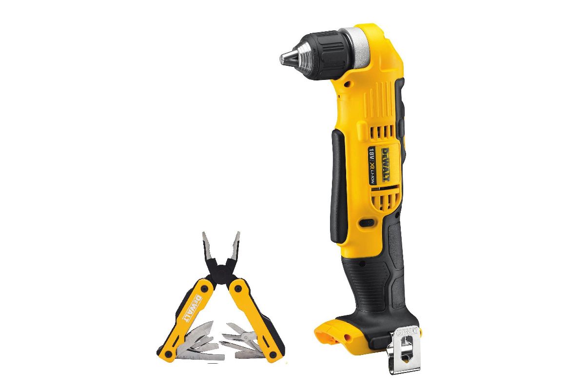 В состав набора входят: Дрель угловая DEWALT DCD740N-XJ БЕЗ АКК. И ЗУ. 18В XR БЗП 10мм 33Нм 300Вт 0-650/2000об/мин 1.3 кг, Мультитул DEWALT DWHT71843